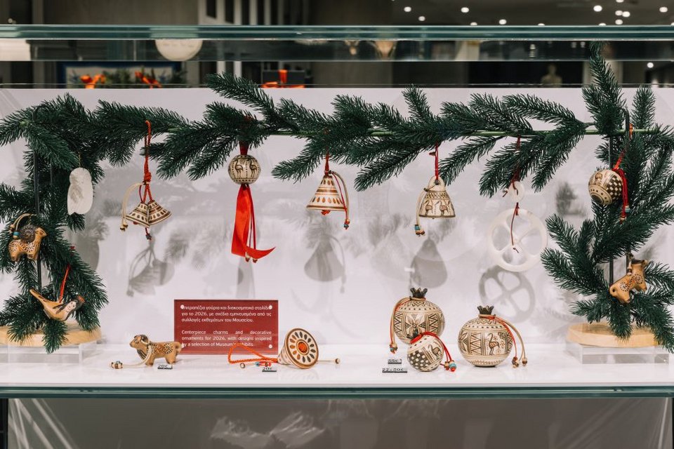 Πολλά στολίδια, χειροποίητα διακοσμητικά και κομψά γούρια όλα εμπνευσμένα από τις πλούσιες συλλογές του Μουσείου Μπενάκη.