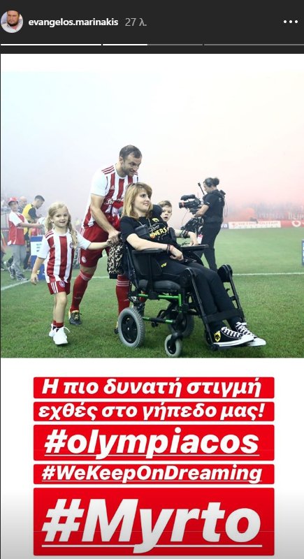 Ο ηγέτης του Ολυμπιακού, με ανάρτηση του στα social media, στάθηκε στην παρουσία της Μυρτώς στο Καραϊσκάκη, τονίζοντας ότι ήταν η πιο δυνατή στιγμή του ντέρμπι.
