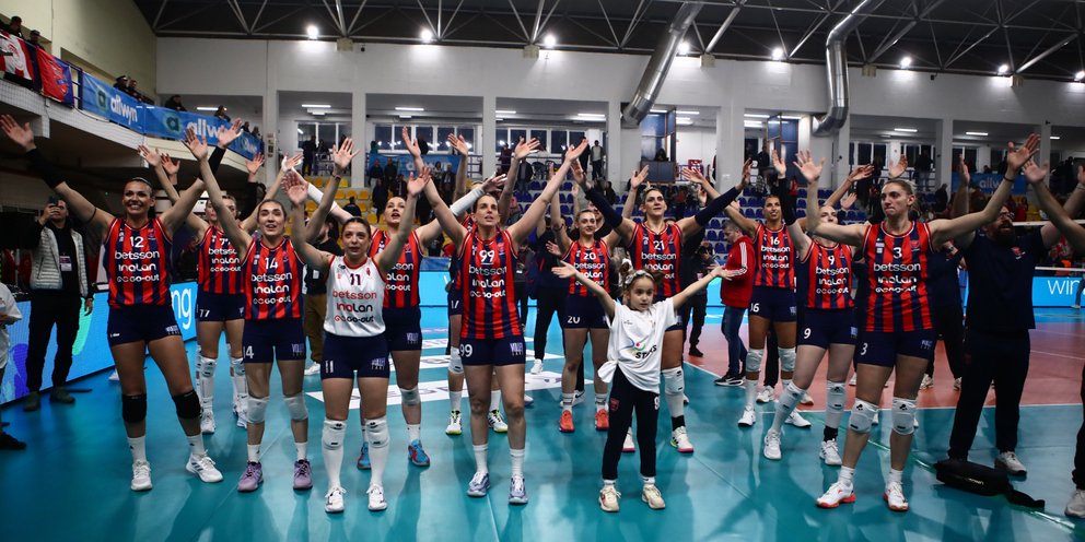 Από το 23-22, ήρθε ένας πόντος της Ατανασίεβιτς κι ένα τρομερό μπλοκ στο φινάλε για να χαρίσει το τέταρτο σετ στις «κυανέρυθρες» του Γιουνούς Οτσάλ με 25-22 και μαζί την πρόκριση στον τελικό του Κυπέλλου Ελλάδας.