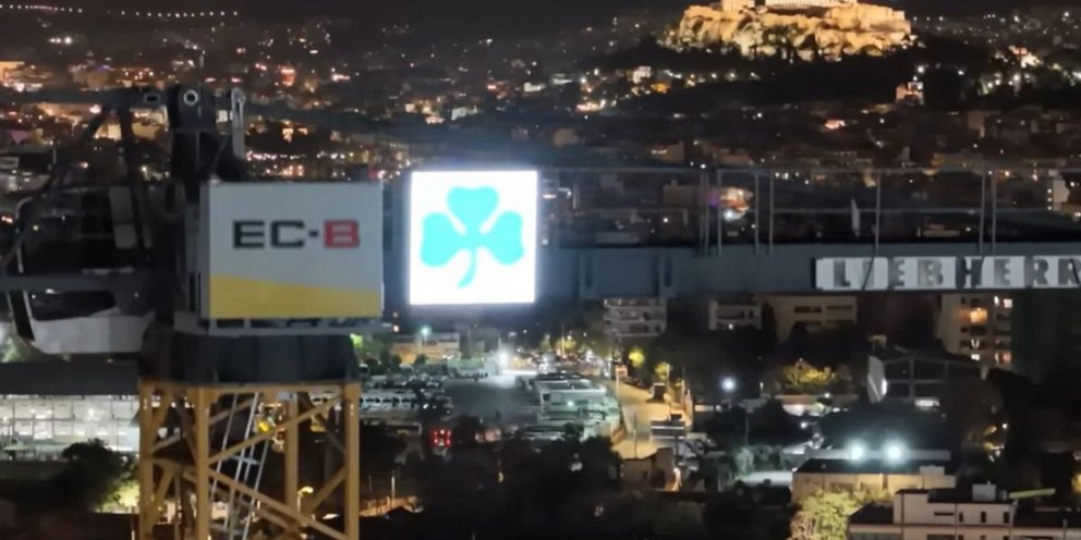 Νυχτερινά πλάνα, τα οποία καταγράφηκαν με drone, αποτυπώνουν τη εξέλιξη των εργασιών και δίνουν μια πρώτη εικόνα από το πώς θα μοιάζει το νέο «σπίτι» των πρασίνων.