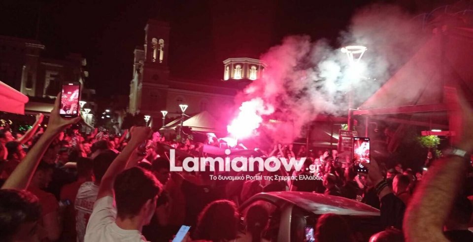 Αμέσως μετά το σφύριγμα της λήξης ξεχύθηκαν με τα αυτοκίνητά τους στους κεντρικούς δρόμους της Λαμίας και συγκεντρώθηκαν στην πλατεία Ελευθερίας για το ολονύχτιο πανηγύρι.