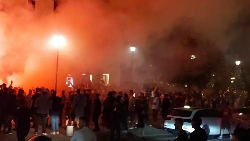Εκατοντάδες οπαδοί του Ολυμπιακού βγήκαν στους δρόμους της Λαμίας μετά την κατάκτηση του ευρωπαϊκού τίτλου από την ομάδα τους στον τελικό του Conference League.