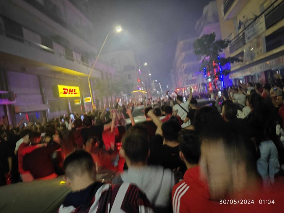 Σε πανηγυρισμούς ξέσπασαν και στο κέντρο Βόλου χιλιάδες άνθρωποι μετά την κατάκτηση του Conference League από τον Ολυμπιακό.