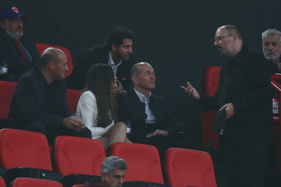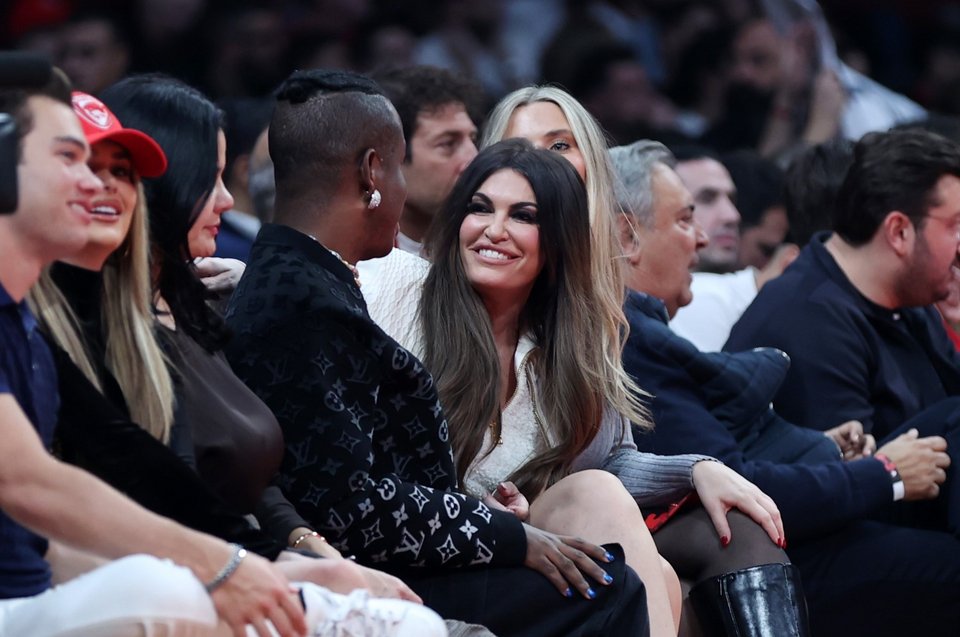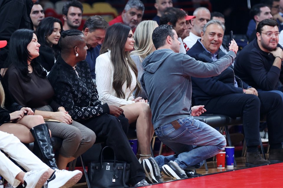 Η Κίμπερλι Γκίλφοϊλ κάθισε αρχικά στις εξέδρες των επισήμων, ανάμεσα στους ιδιοκτήτες της ΚΑΕ, Παναγιώτη και Γιώργο Αγγελόπουλο.