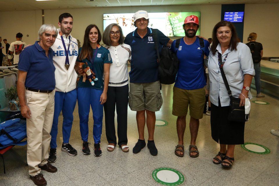 Ο «χρυσός» στο άλμα εις μήκος Μίλτος Τεντόγλου και η «ασημένια» Κατερίνα Στεφανίδη στο άλμα επί κοντώ επέστρεψαν στην Ελλάδα το βράδυ του Σαββάτου (20/8) και στο αεροδρόμιο τους υποδέχτηκαν η πρόεδρος του ΣΕΓΑΣ Σοφία Σακοράφα, ο γενικός γραμματέας Γιώργος Γιατρουδάκης, το μέλος της ΕΠΥΑ Λούλα Καρατζά, καθώς και η μητέρα της «ασημένιας» αθλήτριας και επίσης μέλος της ΕΠΥΑ, Ζωή Βαρέλη.