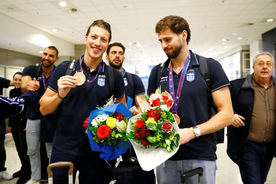 Με πλατύ χαμόγελο και το πολυπόθητο μετάλλιο στο στήθος η εθνική ομάδα πόλο των ανδρών επέστρεψε από το Βελιγράδι και τη συμμετοχή της στο ευρωπαϊκό πρωτάθλημα.
