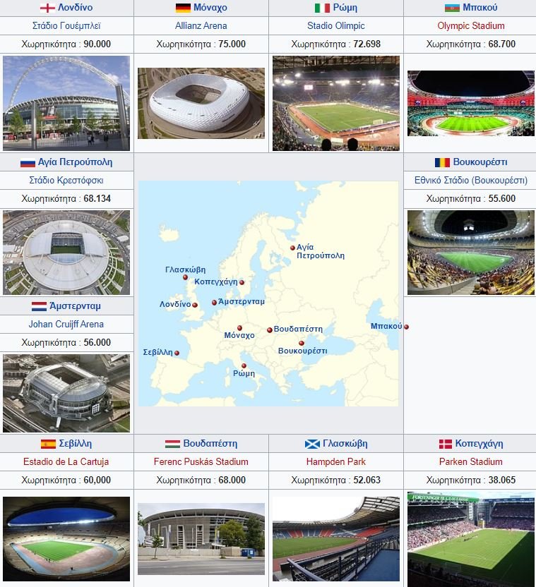 Συνοπτικά, οι χώρες, οι πόλεις και τα γήπεδα διεξαγωγής του EURO 2021: