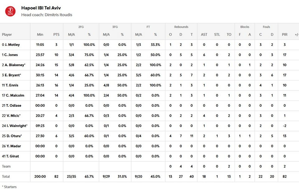 Από τη Χάποελ ξεχώρισε ο Τάιλερ Ένις με 16 πόντους και 4/8 τρίποντα.