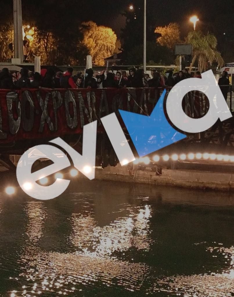 Με αφορμή τη συμπλήρωση των 100 χρόνων του αθλητικού σωματείου αλλά και την πρωτιά στα play offs του πρωταθλήματος, οι φίλαθλοι του Ολυμπιακού της Χαλκίδας έστησαν ένα ξέφρενο πανηγύρι στη γέφυρα του Ευρίπου με συνθήματα για την ομάδα τους ανάβοντας βεγγαλικά που έκαναν τη νύχτα μέρα.