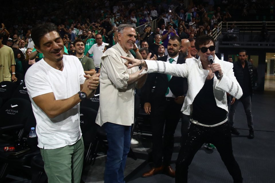 Στη συνέχεια έγινε η παρουσίαση των πρωταθλητών Ευρώπης με έναν έναν παίκτη να μπαίνει εν μέσω αποθέωσης από τους 19.000 οπαδούς στο παρκέ, ενώ επί της υποδοχής τους ήταν ο ισχυρός άνδρας της ΚΑΕ, Δημήτρης Γιαννακόπουλος.