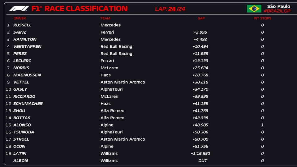 Formula 1 sprint race Βραζιλίας, αποτελέσματα