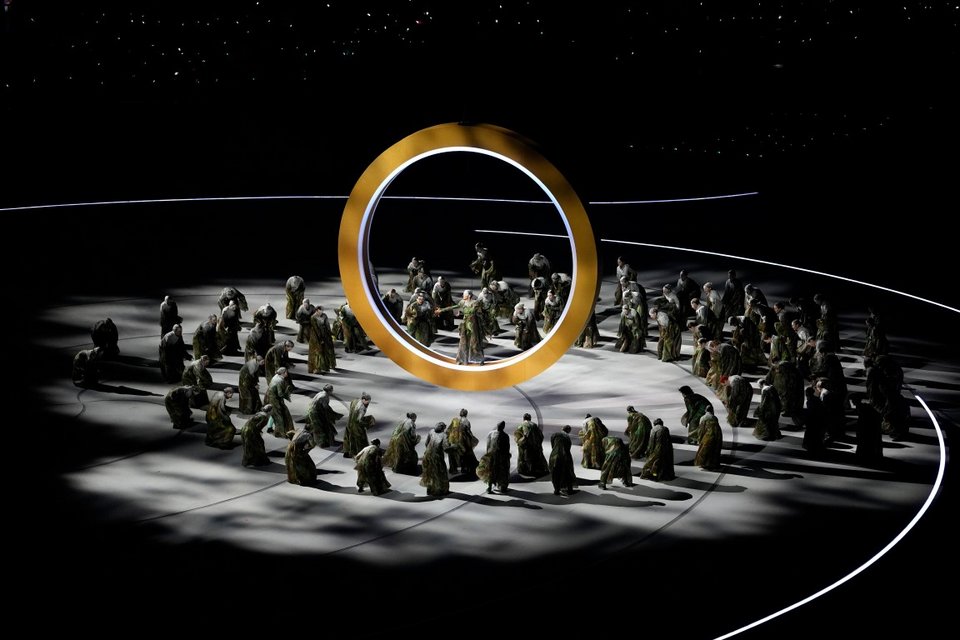 Ο τενόρος Αντρέα Μποτσέλι γέμισε το στάδιο με το «Nessun Dorma» του Πουτσίνι. Καθώς χτυπούσε τις ψηλές νότες, η Ολυμπιακή φλόγα περνούσε ανάμεσα στους λαμπαδηδρόμους.