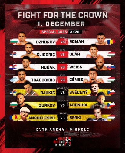 Στις 24 Νοεμβρίου, η τραγουδίστρια Dara από τη Βουλγαρία θα ξεσηκώσει το κοινό με την ενέργεια και τη μουσική της. Στο ρινγκ του HELL Boxing Kings θα εκπροσωπήσουν την Ουγγαρία ο διαγωνιζόμενος του Ευρωπαϊκού Πρωταθλήματος Kruzító Kovács, ο πρωταθλητής νέων και ενηλίκων Rafael Búza, και το μέλος της εθνικής ομάδας Soma Mester, υπόσχοντας θεαματικές αναμετρήσεις. Το υπερθέαμα κορυφώνεται με τους celebrities και πιο συγκεκριμένα με τον τηλεοπτικό παρουσιαστή και influencer Bence Istenes, ο οποίος θα δοκιμάσει τις ικανότητές του στην πυγμαχία απέναντι στον Βόσνιο influencer Nermin Rapkic.