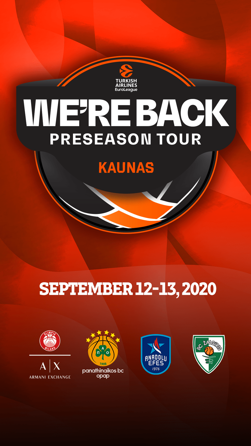 Η φετινή Euroleague ξεκινά τη δράση της με Παναθηναϊκό. Το Σαββατοκύριακο 12 και 13 Σεπτεμβρίου, ο "εξάστερος" θα ταξιδέψει στη Λιθουανία, για το τουρνουά “We’re back Pre season Tour”. Οι “πράσινοι” θα αντιμετωπίσουν στην αρένα της Ζαλγκίρις στο Κάουνας τις Αναντολού Εφές, Αρμάνι Μιλάνο και Ζαλγκίρις Κάουνας.