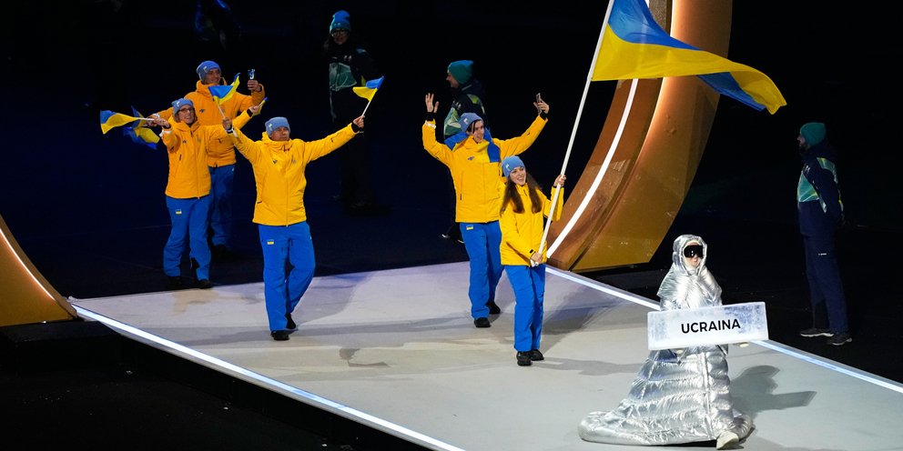 H Ρωσίδα Αναστασία Κουτσέροβα κράτησε το πλακά της ουκρανικής αποστολής στην τελετή έναρξης της χειμερινής Ολυμπιάδας