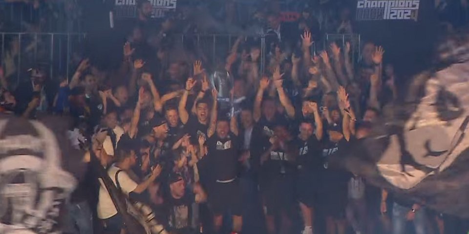 Οι παίκτες του ΠΑΟΚ, λίγες ώρες μετά τη νίκη τους επί του Άρη, ανέβηκαν ένας-ένας στην εξέδρα που είχαν στήσει οι άνθρωποι του «Δικεφάλου», μέσα σε αποθέωση από τους χιλιάδες οπαδούς της ομάδας που γέμισαν την Τούμπα.