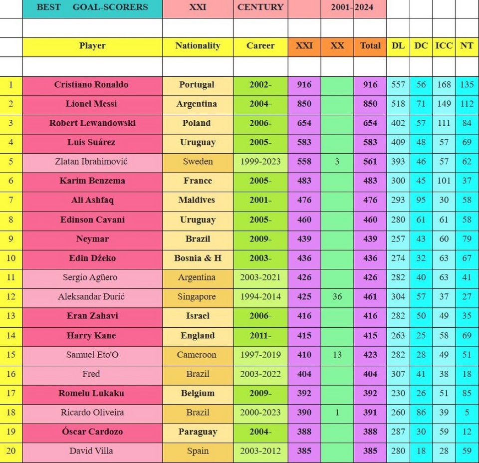 Η λίστα με τους κορυφαίους σκόρερ του 21ου αιώνα