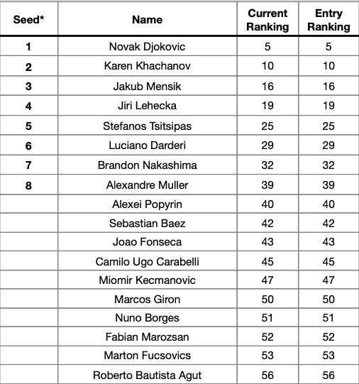 Ο Σέρβος είναι στο Νο1 του ταμπλό όπως είναι φυσικό, ενώ στο τουρνουά θα αγωνιστεί και ο Στέφανος Τσιτσιπάς, με τους δύο να αναμένεται να γεμίσουν με την παρουσία τους το κλειστό του ΟΑΚΑ.