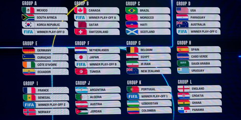 1ο γκρουπ: Μεξικό, Νότια Αφρική, Νότια Κορέα, play off (Δανία, ή Βόρεια Μακεδονία, ή Ιρλανδία, ή Τσεχία)