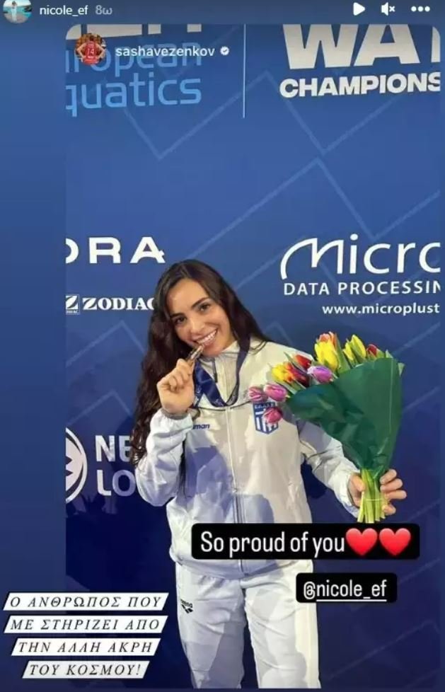 Η Νικόλ Ελευθεριάδου διατηρεί σχέση με τον πρώην καλαθοσφαιριστή του Ολυμπιακού και νυν των Σακραμέντο Κινγκς στο NBA, Σάσα Βεζένκοβ. Όπως είναι φυσικό, θέλησε να της στείλει το δικό του μήνυμα για να της εκφράσει πόσο περήφανος είναι για αυτή, με την ίδια να αναδημοσιεύει το συγκεκριμένο story στο Instagram, γράφοντας: «Ο άνθρωπους που με στηρίζει από την άλλη άκρη του κόσμου».
