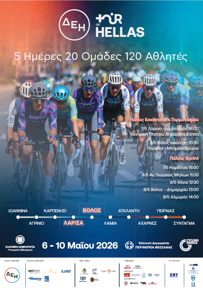 Με 120 pro riders, 20 ομάδες και διαδρομές που αναδεικνύουν τη φυσική ομορφιά, την ιστορία και τη δυναμική της χώρας, ο ΔΕΗ Tour of Hellas 2026 ταξιδεύει από τα Ιωάννινα, την Θεσσαλία έως την Αθήνα, μεταφέροντας την εικόνα της Ελλάδας σε όλο τον κόσμο.