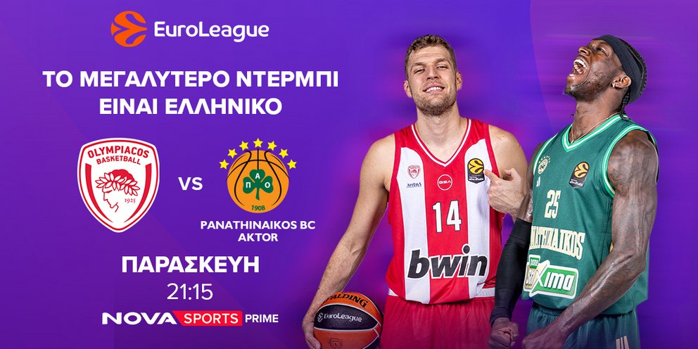 Οι φίλοι του μπάσκετ την Παρασκευή 6 Μαρτίου στις 21:15 θα έχουν την ευκαιρία να απολαύσουν αποκλειστικά στο Novasports Prime το μεγαλύτερο ντέρμπι της EuroLeague με ελληνικό χρώμα, Ολυμπιακός – Παναθηναϊκός AKTOR που θα διεξαχθεί στο ΣΕΦ για την 30η αγωνιστική της κορυφαίας ευρωπαϊκής διασυλλογικής διοργάνωσης στο χώρο του μπάσκετ.