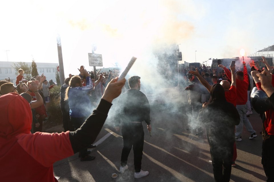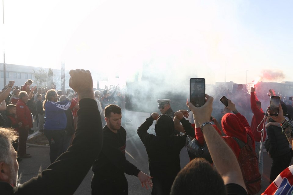 «Φέρτε μας το ευρωπαϊκό, θρύλε ολέ, σ' αγαπώ», τραγουδούσαν οι παρευρισκόμενοι στη θέα του πούλμαν που μετέφερε την ερυθρόλευκη αποστολή.