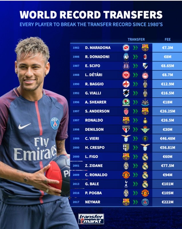 Αυτή η συμφωνία με τον Νεϊμάρ εξακολουθεί να ισχύει σήμερα ως το παγκόσμιο ρεκόρ στις μεταγραφές και φαίνεται απίθανο κάτι να το ξεπεράσει σύντομα.