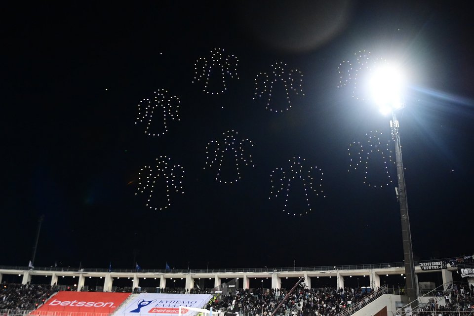 Κάτι που δεν είχε ξαναγίνει στην ιστορία του Κυπέλλου Ελλάδας εκτυλίχθηκε στο ημίχρονο του τελικού, με ένα εντυπωσιακό drone show να κλέβει την παράσταση στο Πανθεσσαλικό.