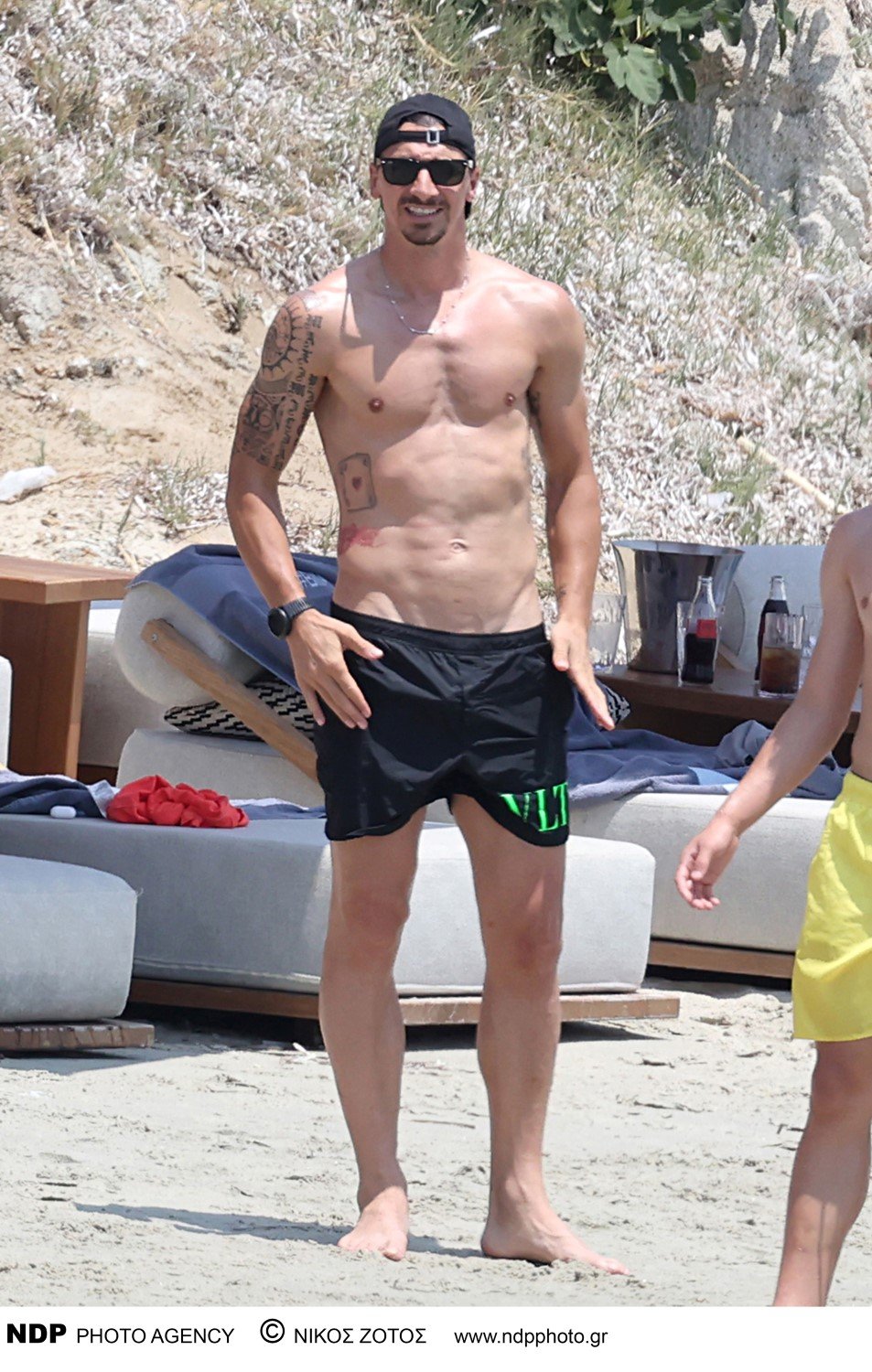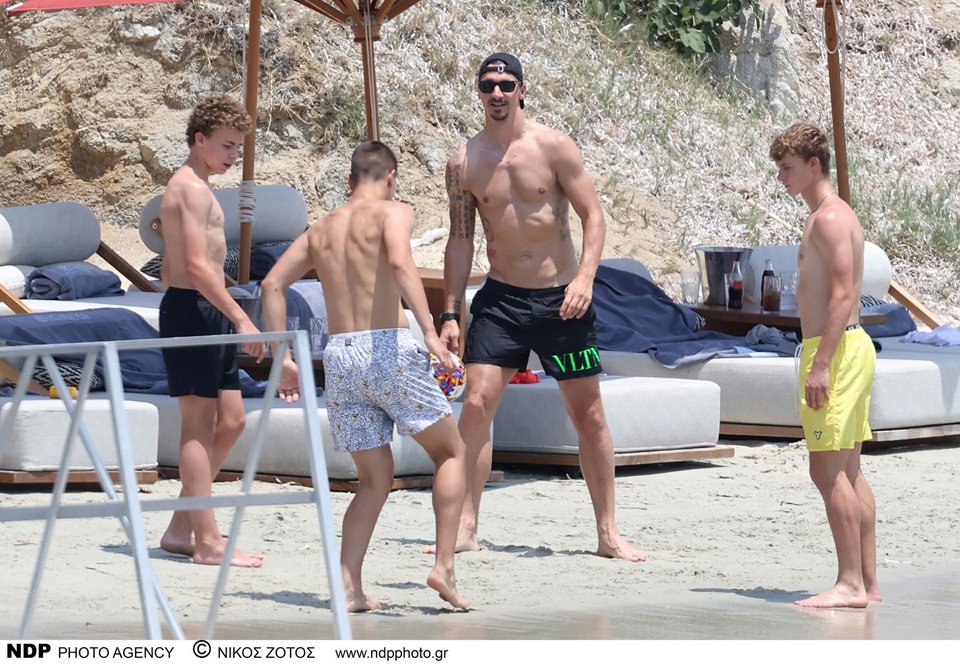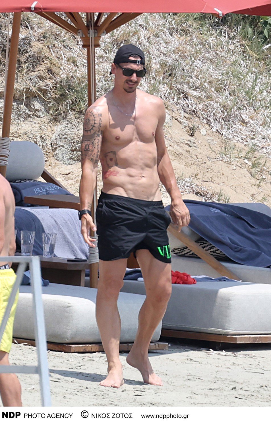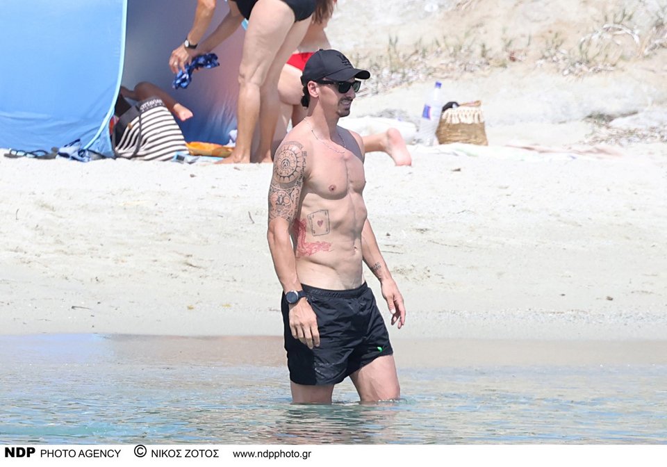 Ο Ιμπραΐμοβιτς εθεάθη σε άψογη φυσική κατάσταση να απολαμβάνει τον ήλιο και τη θάλασσα του Αιγαίου, αδιαφορώντας για την παρουσία του φωτογραφικού φακού. Μαζί του ήταν η σύζυγός του, Σουηδέζα επιχειρηματίας, ηθοποιός και μοντέλο Χελένα Σέγκερ αλλά και ο γιος τους, Μαξιμίλιαν.
