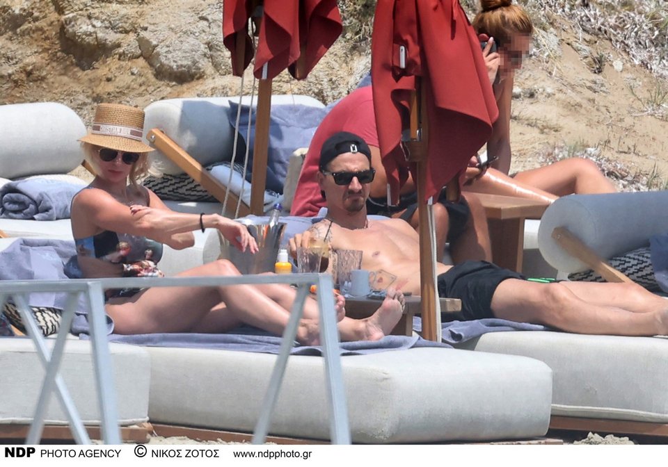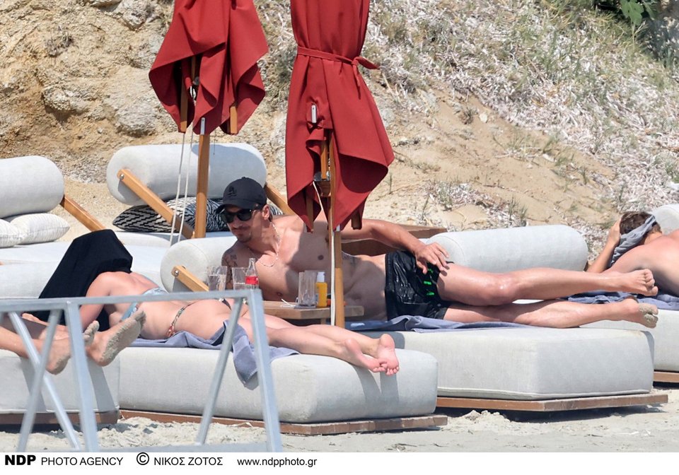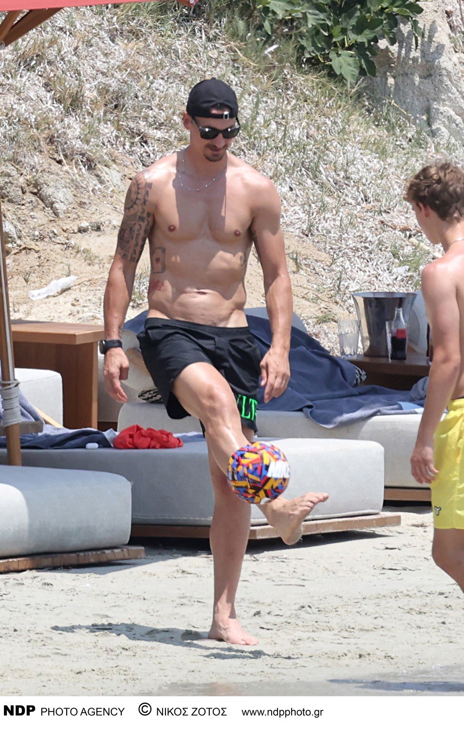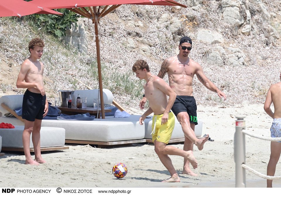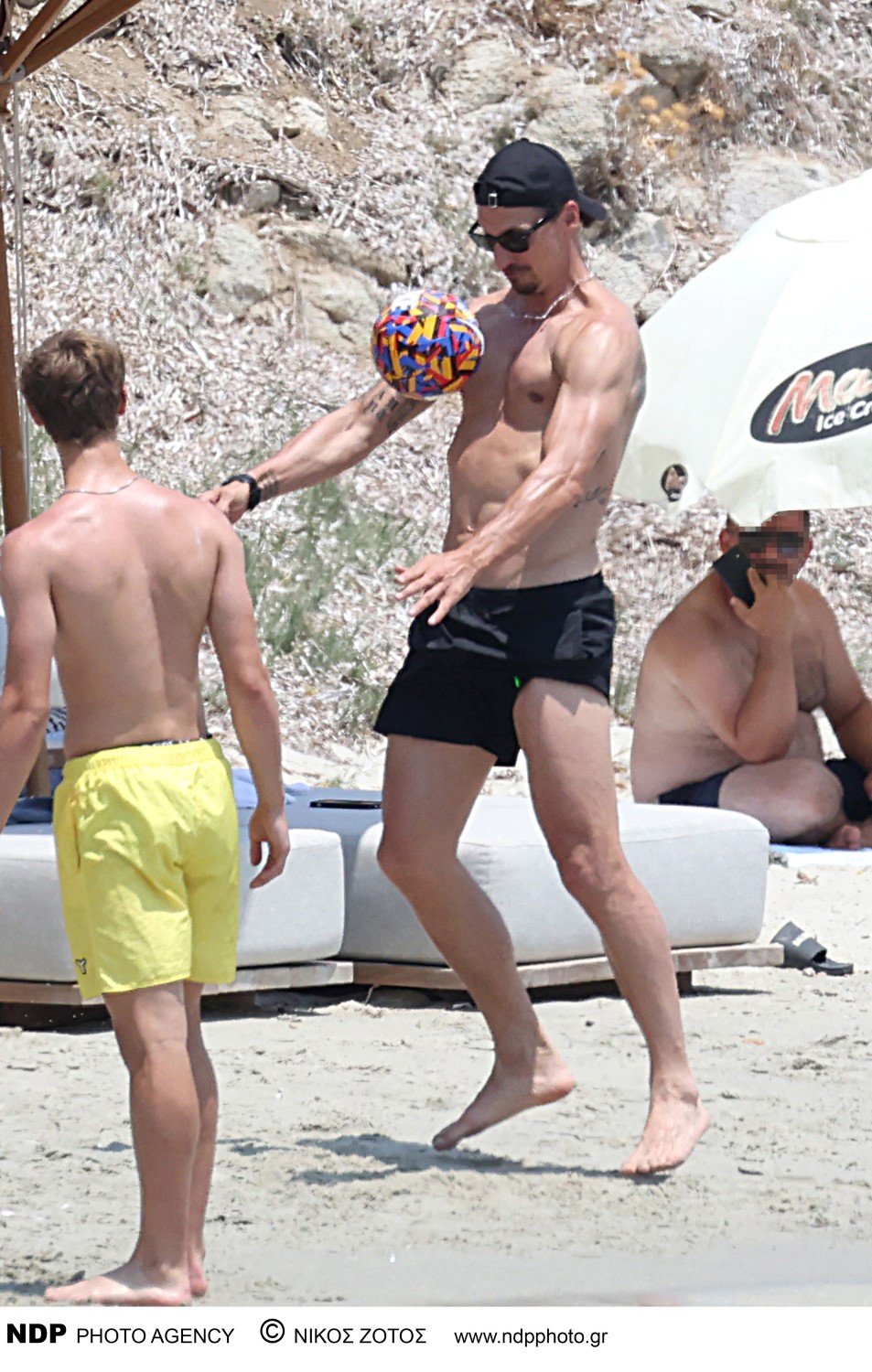 Ο Ιμπραΐμοβιτς εθεάθη σε άψογη φυσική κατάσταση να απολαμβάνει τον ήλιο και τη θάλασσα του Αιγαίου, αδιαφορώντας για την παρουσία του φωτογραφικού φακού. Μαζί του ήταν η σύζυγός του, Σουηδέζα επιχειρηματίας, ηθοποιός και μοντέλο Χελένα Σέγκερ αλλά και ο γιος τους, Μαξιμίλιαν.