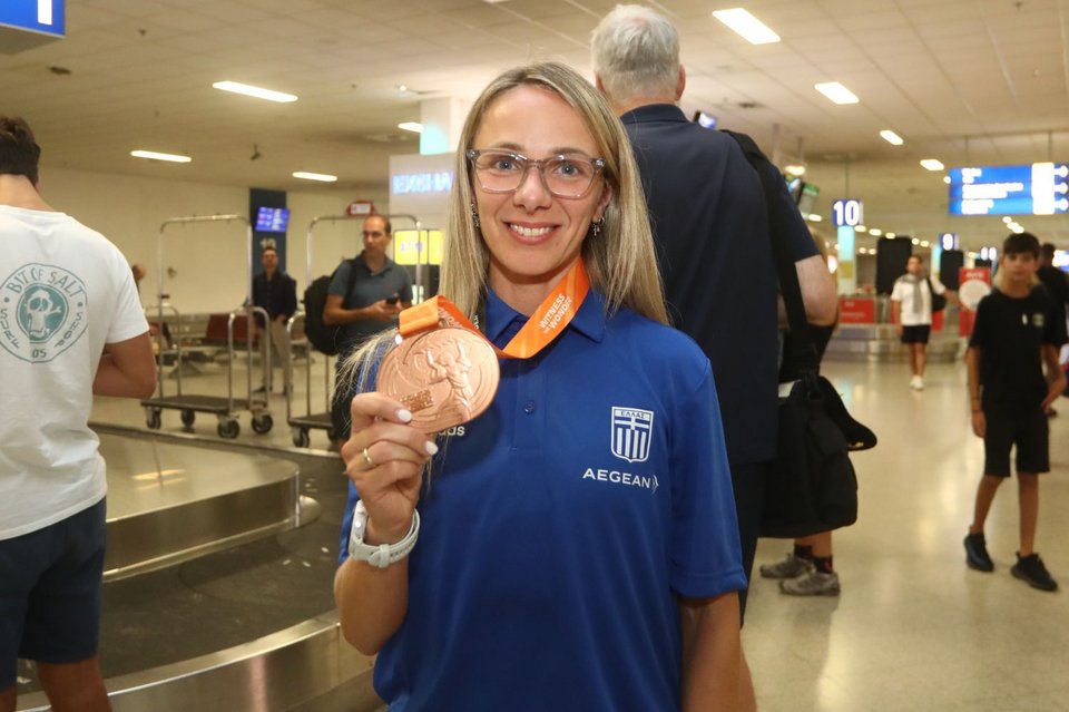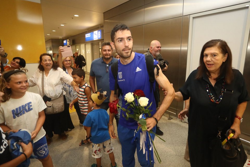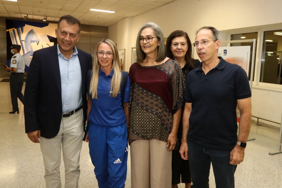 Τους αθλητές υποδέχθηκαν η πρόεδρος του ΣΕΓΑΣ, Σοφία Σακοράφα, με τον αναπληρωτή υπουργό Αθλητισμού, Γιάννη Βρούτση, και τον γενικό γραμματέα Αθλητισμού, Γιώργο Μαυρωτά.
