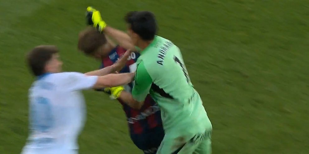 Με το σκορ στο 1-0 υπέρ των γηπεδούχων και το ματς στις καθυστερήσεις, ο τερματοφύλακας των φιλοξενούμενων προσπάθησε να παίξει γρήγορα την μπάλα.
