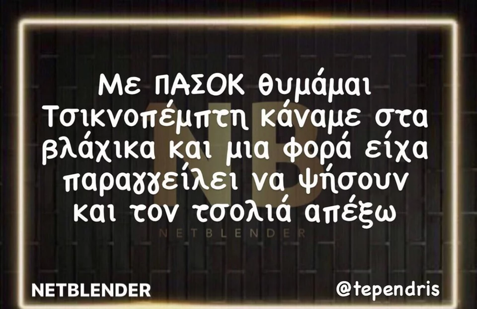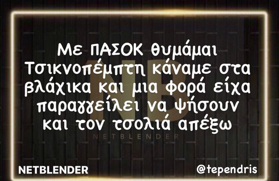 Εκατοντάδες memes στα social media με το «παλιό, καλό, ορθόδοξο ΠΑΣΟΚ» γίνονται viral εν ριπή οφθαλμού. Στις δύσκολες εποχές που διανύουμε, η νοσταλγική διάθεση κυριαρχεί. Επί ΠΑΣΟΚ όλα έμοιαζαν να είναι καλύτερα: Οι μισθοί, η διασκέδαση, τα κοινωνικά δικαιώματα, η ελευθερία -χωρίς lockdown, μνημόνια και κορωνοϊό.