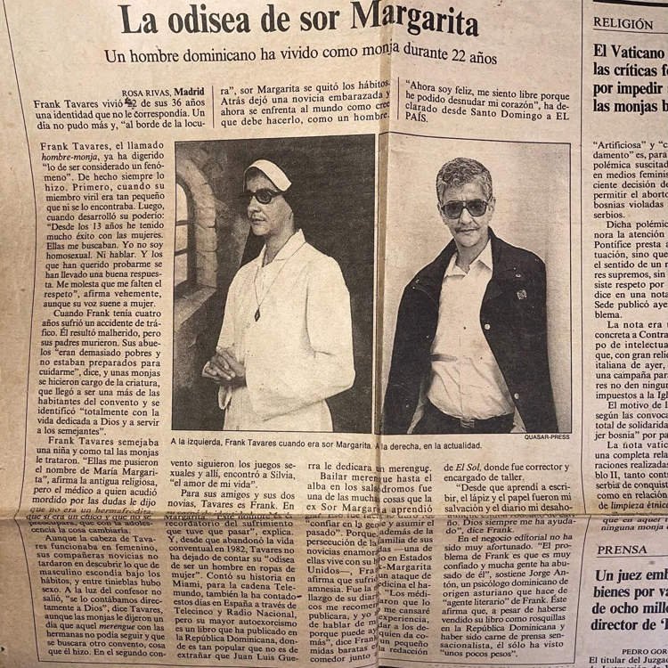 Ο Φρανκ Ταβάρες, γεννημένος στη Δομινικανή Δημοκρατία, έζησε για 22 χρόνια ως μοναχή με το όνομα «Αδελφή Μαργαρίτα» σε δύο διαφορετικά μοναστήρια, χωρίς κανείς να υποψιαστεί την πραγματική του ταυτότητα.
