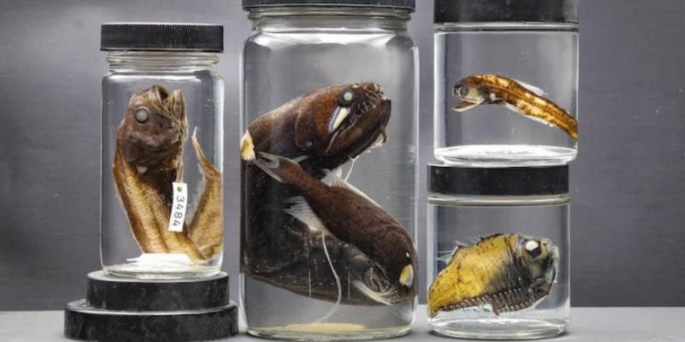 Ο Justin Mann, διαχειριστής της συλλογής, κρατά ένα βάζο με ένα ψάρι βαθέων υδάτων και το παρατηρεί σαν να πρόκειται για κάτι ζωντανό. «Κάθε δείγμα είναι μια ιστορία», λέει. «Δεν είναι απλώς ένα είδος. Είναι μια στιγμή στον χρόνο».