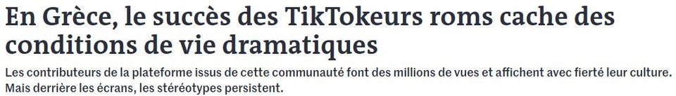 Ο Σπύρος Μπάκας, εκπαιδευτικός που συμμετέχει στο Δίκτυο Νέων Ελλήνων Ρομά και εργάζεται με παιδιά στη βόρεια Ελλάδα, διαβεβαιώνει στο γαλλικό μέσο πως «όλοι οι έφηβοι Ρομά έχουν TikTok».