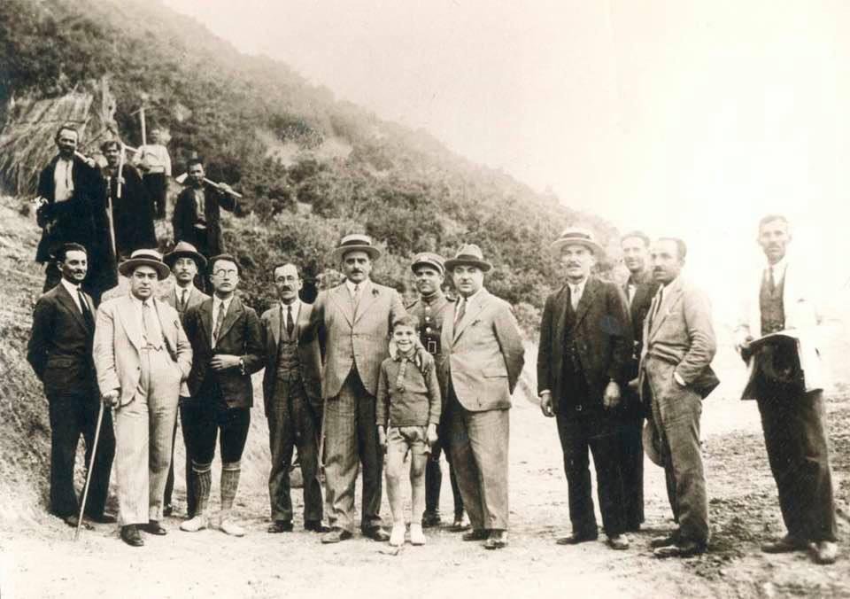 Είναι λοιπόν μία φωτογραφία από τη διάνοιξη κάποιου δρόμου στα Ζαγόρια στην Ήπειρο, το 1932! Ο μικρός, επτά χρόνων, είναι ο πατέρας μου.