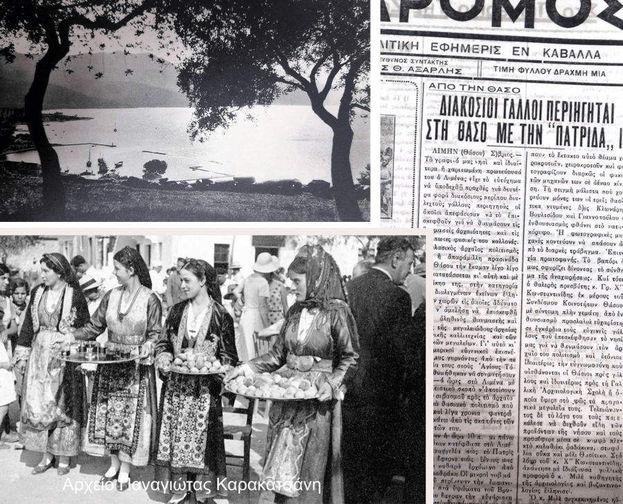 Το σημαντικό αυτό γεγονός της επίσκεψης των Γάλλων τουριστών στο νησί, είχε καταγράψει η τοπική εφημερίδα της Καβάλας ΤΑΧΥΔΡΟΜΟΣ με ημερομηνία 8 Σεπτεμβρίου 1933, το δημοσίευμα της οποίας ανέσυρε ο ερευνητής ιστορίας Κώστας Παπακοσμάς από τα αρχεία που φυλάσσονται στη δημοτική βιβλιοθήκη Καβάλας «Βασίλης Βασιλικός».