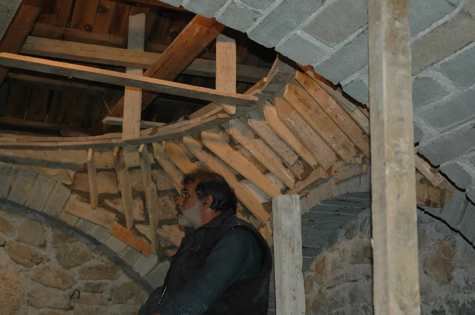 Προσθέτει δε πως «οι παλιοί επειδή είχαν φωτισμένη γνώση αιώνων τούς ήταν εύκολο το έργο της αναστήλωσης. Σήμερα δεν υπάρχει εκπαιδευμένο προσωπικό και είναι πιο δύσκολο. Εγώ στάθηκα τυχερός καθώς τα πρώτα χρόνια της καριέρας μου βρήκα την τελευταία γενιά ανθρώπων που ήξεραν να φτιάξουν θόλους, να κάνουν σταυροθόλια, να κάνουν κάθε μορφής τρούλο. Κι έτσι, εκπαιδεύω εγώ το προσωπικό και καταφέρνουμε να κάνουμε τη σειρά των ξυλοτύπων που είναι απαραίτητοι για να στήσουμε το αρχιτεκτονικό πλαίσιο».