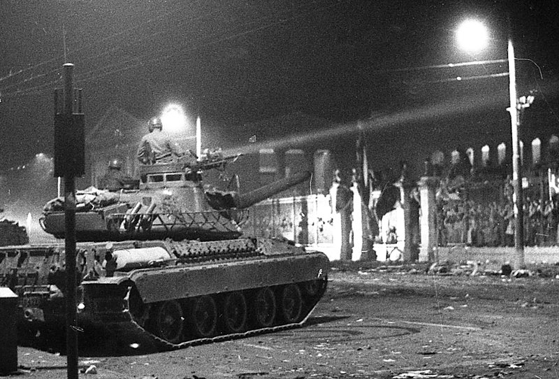Περίπου στη μία μετά τα μεσάνυχτα ακούστηκαν οι ερπύστριες. Ήταν τα τανκς της χούντας, που έρχονταν για να αντιμετωπίσουν τους φοιτητές.