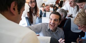 ΠΟΛΙΤΙΚΗ 23/04/2015 14:51 Στο αεροπλάνο με τον Αλέξη Τσίπρα -Χαλαρές στιγμές και χαμόγελα με δημοσιογράφους [εικόνες]