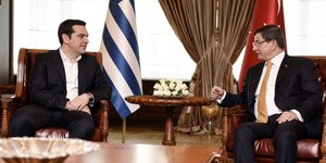 ΠΟΛΙΤΙΚΗ 08/03/2016 21:54 Ο Νταβούτογλου κέρασε κουλούρι τον Τσίπρα στην παραλία της Σμύρνης [εικόνες]