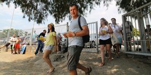 ΠΟΛΙΤΙΚΗ 19/07/2014 18:59 Mε βερμούδα, σανδάλια και το σακίδιό του ο Σταύρος Θεοδωράκης μοίρασε φυλλάδια σε παραλίες της Αττικής [εικόνες]