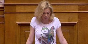 ΠΟΛΙΤΙΚΗ 05/09/2013 10:21 Μετά την μπλούζα με τον παπαγάλο η Ραχήλ Μακρή έβαλε ενα strapless μπλουζάκι για να βγει στον ΑΝΤ1 [εικόνα]