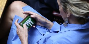ΠΟΛΙΤΙΚΗ 28/04/2017 14:27 Ο φακός έκανε ζουμ: Η Αννα Καραμανλή έπαιζε πασιέντζα στη Βουλή, στο κινητό της [εικόνες]