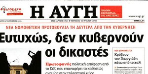 ΕΛΛΑΔΑ 27/10/2016 11:28 Πρωτοσέλιδη επίθεση της «Αυγής» στη Δικαιοσύνη: Ευτυχώς δεν κυβερνούν οι δικαστές