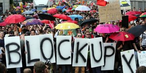 ΚΟΣΜΟΣ 11/02/2015 17:08 To Blockupy διαδηλώνει υπέρ της Ελλάδας – Κατηγορεί την ΕΚΤ για εκβιασμό της χώρας