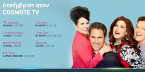 MEDIA 30/11/2018 21:34 Δεκέμβριος στην COSMOTE TV: Πρεμιέρα για τη νέα σεζόν του Will & Grace, τον 3ο κύκλο του The Good Place & 5 ακόμα σειρές [βίντεο]