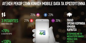 ΤΕΧΝΟΛΟΓΙΑ 07/01/2019 21:18 Cosmote: Αύξηση 130% στην κίνηση data μέσω 4G κατά την εορταστική περίοδο
